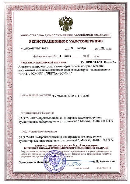На основании закона от 12.04.2010 г. №61-ФЗ «Об обращении лекарственных средств», медицинская продукция должна соответствовать действующим стандартам. Во исполнение правовых норм РосЗдравНадзор выдает регистрационные удостоверения, благодаря которым подтверждается безопасность использования данной продукции.